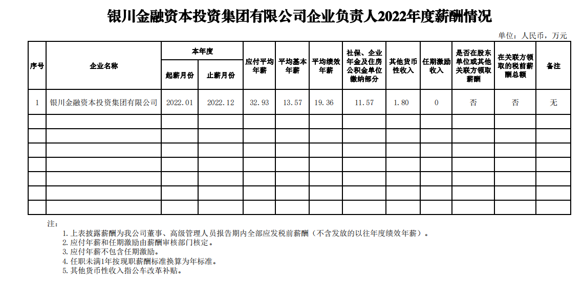銀川金融資本投資集團(tuán)國有企業(yè)負(fù)責(zé)人 2022 年度薪酬情況